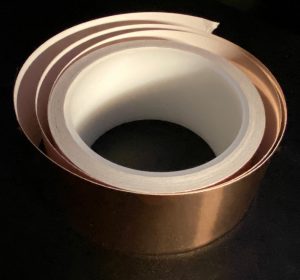 We use 99+% pure copper foil usually used to provide electronic shielding of sensitive electronic components. The foil is conductive, has a self adhesive backing and has no coating.
