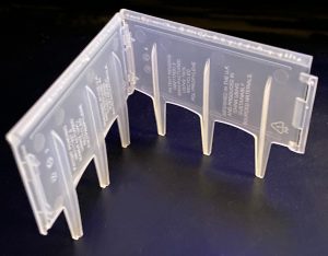 It is accurately manufactured from 100% recycled polypropylene in high precision mould tools to ensure the individual carrier segments snap together and the hinge functions correctly. The hinge also helps people with limited dexterity as it can slide together and slide apart.